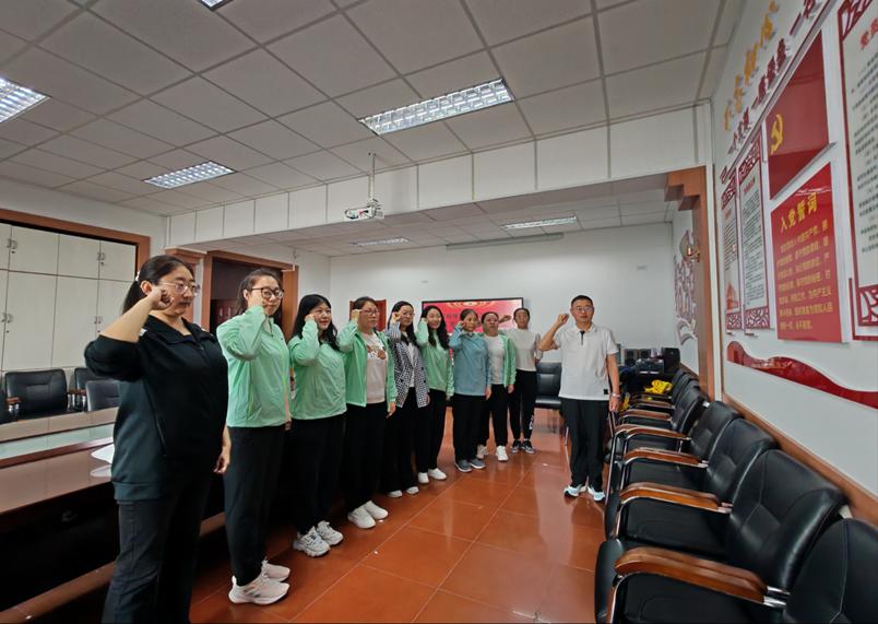 会议第三项,正处级组织员王海志带领新发展党员进行入党宣誓以及支部全体党员重温入党誓词。面对鲜红党旗,新发展预备党员以铿锵誓言许下对党忠诚的庄严承诺,为党组织注入蓬勃生机;老党员们重温入党誓词,在字字千钧的誓言中回溯初心、坚定信念。薪火相传间,两代党员以共同的信仰凝聚奋进力量,未来将继续立足教育岗位,以实际行动践行使命担当,为学校高质量发展与党的教育事业谱写新篇章。
